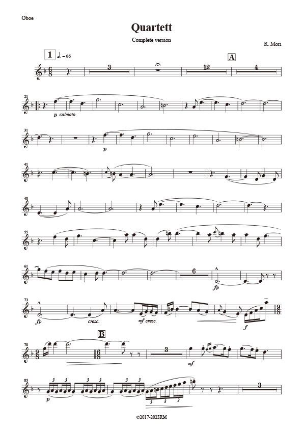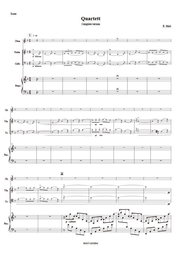 スコア譜とパート譜(オーボエ、ヴァイオリン、チェロ)がセットになっています。